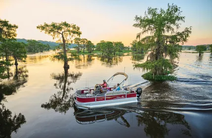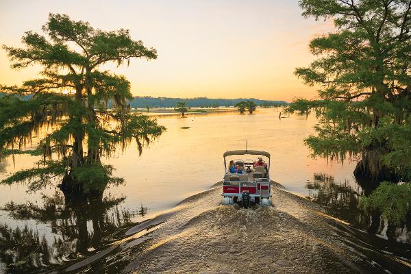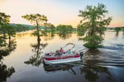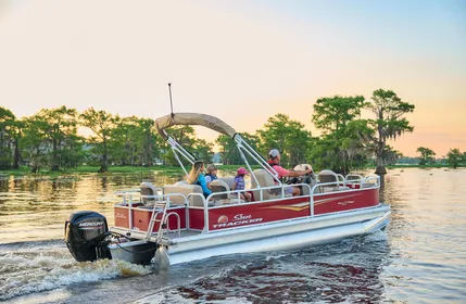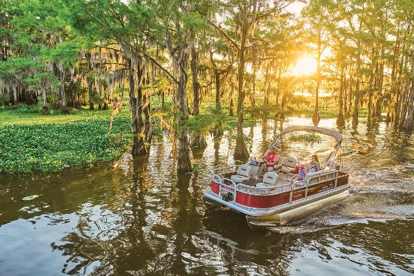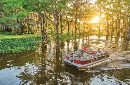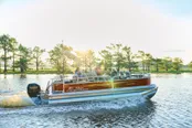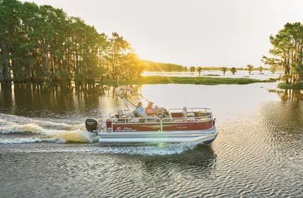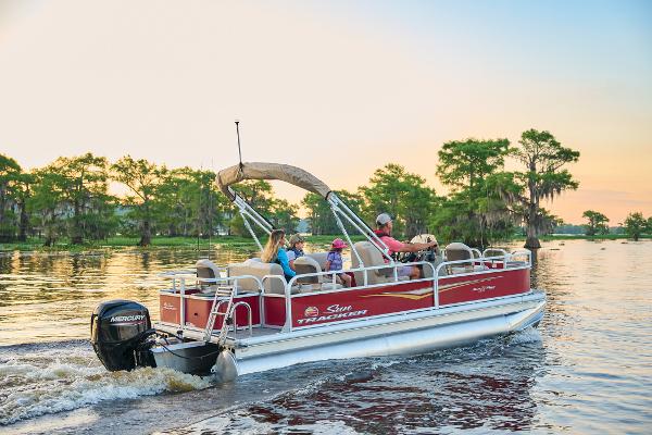 7' (2.13 m) polyester Bimini top w/easy-adjusting straps, trailering-position arms & protective boot (color-coordinated Sand w/Copper Red or Indigo Blue fencing)