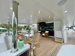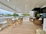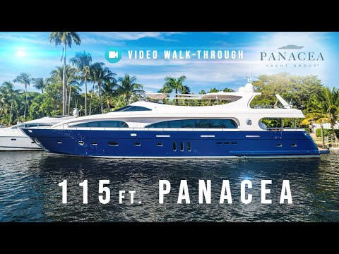 A complete refit, M/Y PANACEA represents one of if not the best buying opportunity in this class. PANACEA sports a fantastic layout in a 35m platform, featuring main deck master, 2nd full beam master, VIP forward, and 2 additional guest staterooms. The large aft deck features custom split hi-low tables for dining or cocktail time, port & starboard lounges, new furniture, upholstery and overhead LED lighting. The flybridge on PANACEA rivals anything found on much larger vessels with a large sun deck aft, dining and lounge space under the hardtop, and a bunny pad with jacuzzi and wet bar forward. You'll be hard pressed to find another yacht in this class to match the interior and exterior layout of PANACEA.