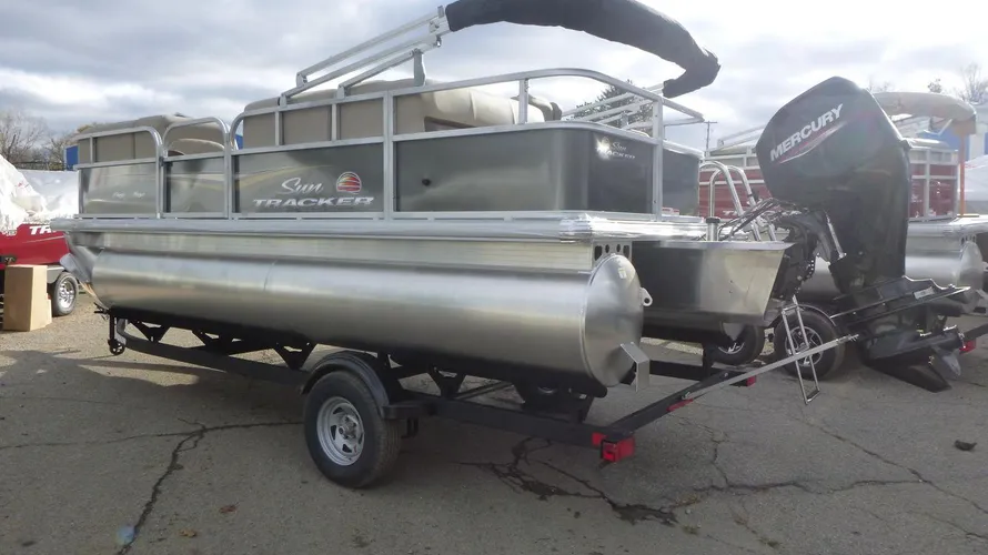 The PARTY BARGE® 18 DLX comes standard with a 40hp Mercury® ELPT FourStroke outboard motor and has a recommended maximum 75hp rating.